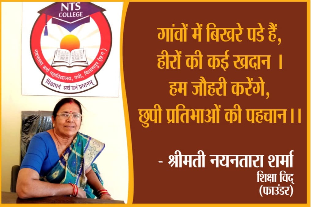 The region of Bilaspur in Chhattisgarh, known as the "Education Hub," is home to numerous schools, national and international universities and colleges where thousands of students pursue advanced degrees and prepare for competitive exams. For this, well-known coaching sessions are held, where students learn while serving the nation as engineers, doctors, and officials, raising the worth of Bilaspur in the process. The Nayantara Sharma Mahavidyalaya is located on the major route of Village Pandhi on Seepat Road, just 10 km from this educational hub Bilaspur. From the academic year 2022–2023 there are many courses being taken. Please click on below link to know more.
